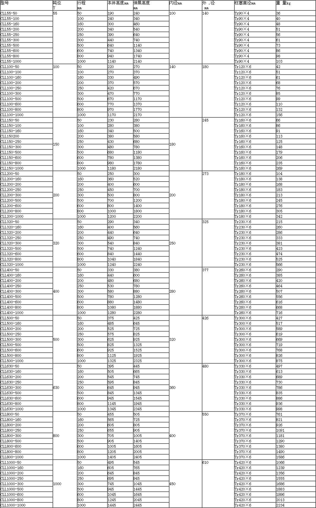 | CLL系列機械式自鎖千斤頂 詳細參數(shù) |