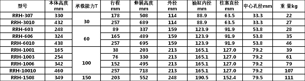 | RRH雙作用空心千斤頂 詳細(xì)參數(shù) |