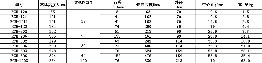 | RCH系列單作用空心千斤頂 詳細參數(shù) |