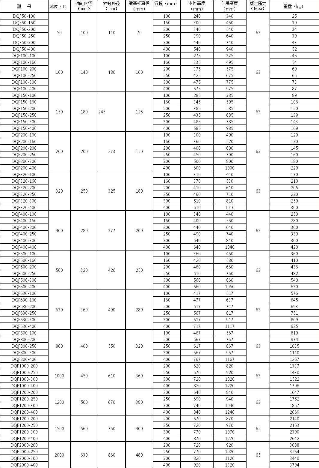 | DQF系列超高壓電動(dòng)千斤頂 詳細(xì)參數(shù) |