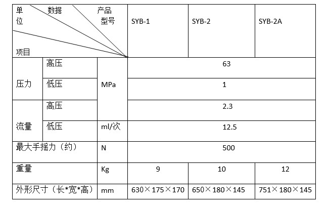| SYB系列單向手動油泵 詳細參數(shù) |